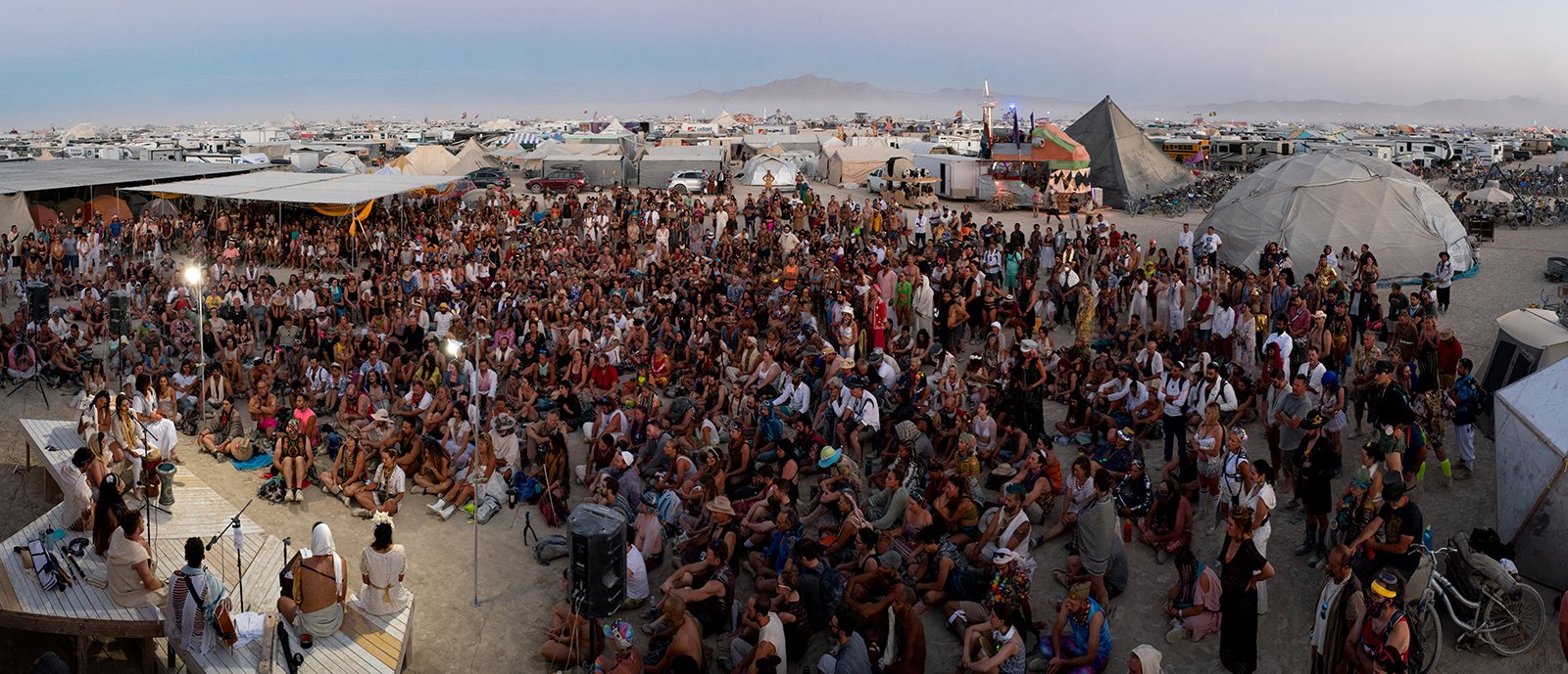 Burning Man, ежегодное анархическое собрание в соляных плато пустыни Блэк-Рок на северо-западе штата Невада, запланированное на 27 августа — 4 сентября, часто хвалится своим гедонизмом и знаменито употреблением наркотиков и публичной наготой. Но у этого мероприятия всегда была и духовная сторона: 10 руководящих принципов, неконфессиональный храм и повторяющиеся ритуалы сожжения. А в последние годы религиозные группы стали отвоевывать себе место на «игровом поле» — общественной площади Burning Man — предлагая свободные от осуждения, радикально инклюзивные ритуалы, которые, похоже, становятся все более популярными с каждым годом.