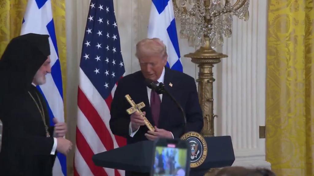 В минувшие выходные в ходе торжественной церемонии, прошедшей в одном из духовных центров греческой православной диаспоры в США, архиепископ Америки Элпидофор вручил президенту Дональду Трампу Святой Крест, назвав его «воплощением христианских ценностей» и сравнив с великим римским императором Константином Великим.